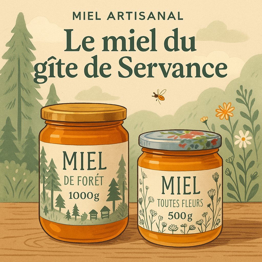 Notre miel, c’est un peu la version “à emporter” de ce que l’on aime à Servance : la forêt, le calme, la simplicité. Vous venez pour le gîte, la nature, les balades… et vous repartez avec un pot de miel qui prolonge le séjour au petit-déjeuner, chez vous.